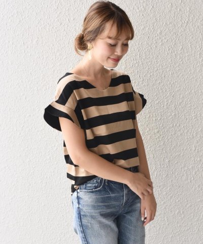 カジュアルなボーダーが、フリルスリーブで可愛らしいデザインのカットソーで登場。