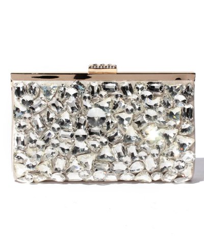 輝くビジューをフロントにたっぷりと敷き詰めた品格クラッチ。