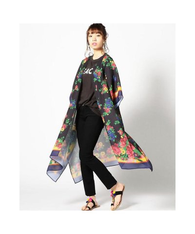 まるでスカーフのような花柄をのせたガウン。シルエットが美しく、歩くたびに軽やかな生地が優雅に揺らめきます。袖にも身幅にもゆとりがあり、着心地も快適。周囲と差をつけるアイテムで、普段使いにも華やかなシーンにも最適です。