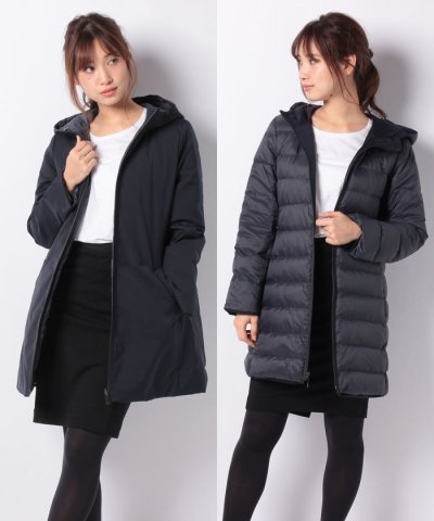 さりげないAラインシルエットとフードがカジュアルな愛らしさを感じさせるダウンコート。リバーシブルで着用できるので、ダウン特有のステッチを内側にし、スッキリとした印象で着こなすことも。