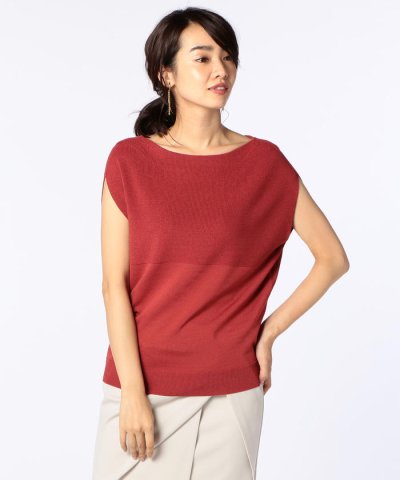パターンを切り替えた編み地のグラデーションとなめらかな光沢が上品な印象を与えるノースリーブニットです。ウエストラインはすっきりと、バストラインをゆったりと仕上げたほど良いメリハリのあるシルエットが、ナチュラルで女性らしい着こなしを演出してくれる一枚です。