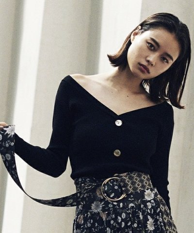オフショルダーとしても着用可能な、リブニットプルオーバー。