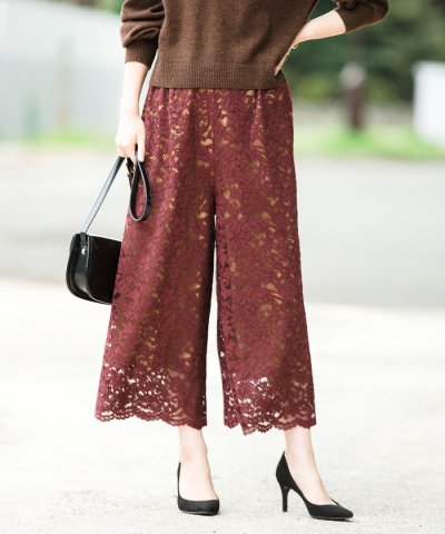着こなしをクラスアップ!ヴィンテージライクなエッセンスが加わる総レースのクロップド丈パンツ上品なレースをぜいたくに使用した、総レースのクロップドパンツです。美脚シルエットなので、甘くなりがちなレースコーデも、洗練された印象とスマートさを兼ね備えています。凛とした女性らしい雰囲気を持ちながらも、総ゴム仕様で履き心地は快適。