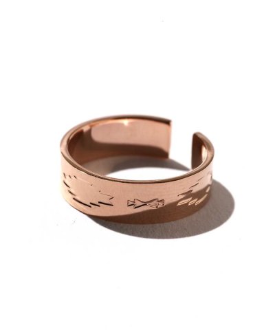 今季らしいエスニックムード溢れるデザインが目を惹くリングです。手の込んだネイティブライクなパターンが、シーズンコーディネートに旬のアクセントを添えます。洗練されたフォルムは、単品使いはもちろん、他のアクセサリーとの重ね付けもお楽しみいただける逸品。