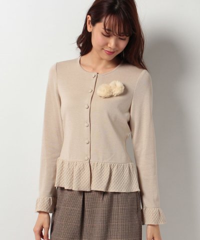 袖口と裾をふんわり異素材で切り替えた、大人の可愛さ溢れるニットカーディガン。胸元にあしらった2つのふわふわブローチは取り外しができるから、気分やスタイリングに合わせてアレンジもOK。上質ウールで着心地も良好。