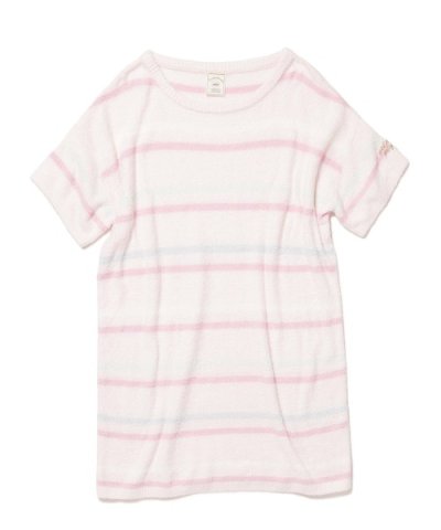 全体にゆったりとボリュームを持たせたシルエットで、ルックスも着心地もリラックス度満点に仕上げたドレス。明るいトーンのボーダー柄が、気分をぐっと上げてくれそうです。キラキラときらめく袖口のロゴ刺繍も、お洒落心をくすぐるポイント。