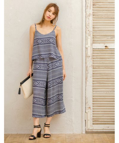ボヘミアン柄キャミトップスガウチョパンツ2点セット